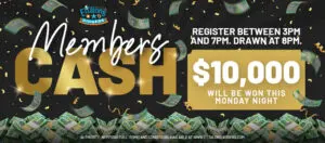 Members’ Cash has reached $10,000 and will be won on Monday 4th May 2026